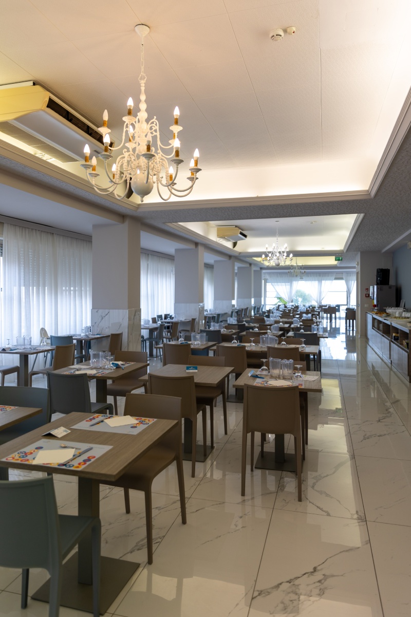 La colazione è servita a buffet e propone un’offerta semplice ma completa, ideale per affrontare una nuova giornata di mare.